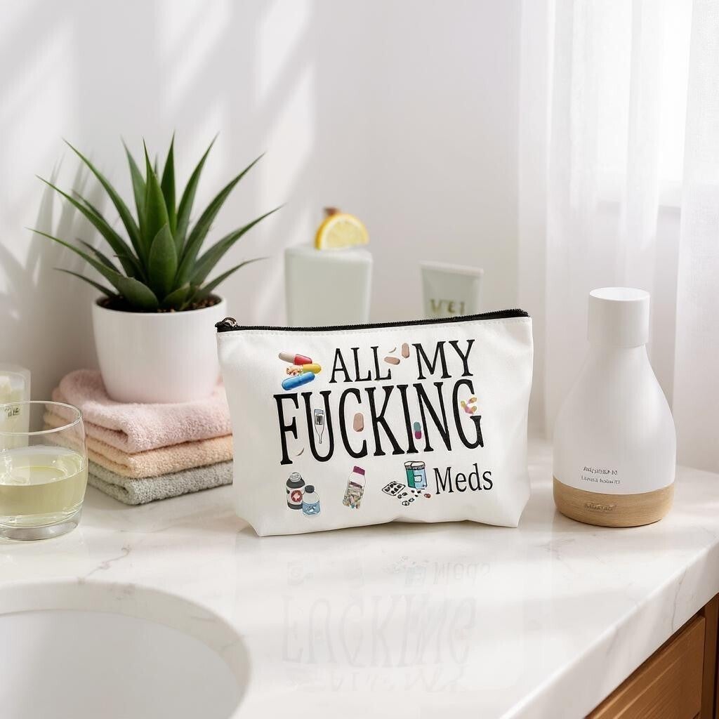 Perhaps a gift to someone or wanting the product for yourself. This quirky lined zipper pouch says it all. Pure white background with print on both sides in a roomy size at 15x21cm. So, whether is for medication blicter packs to small bottles, you'll find this an ideal product for home or away.